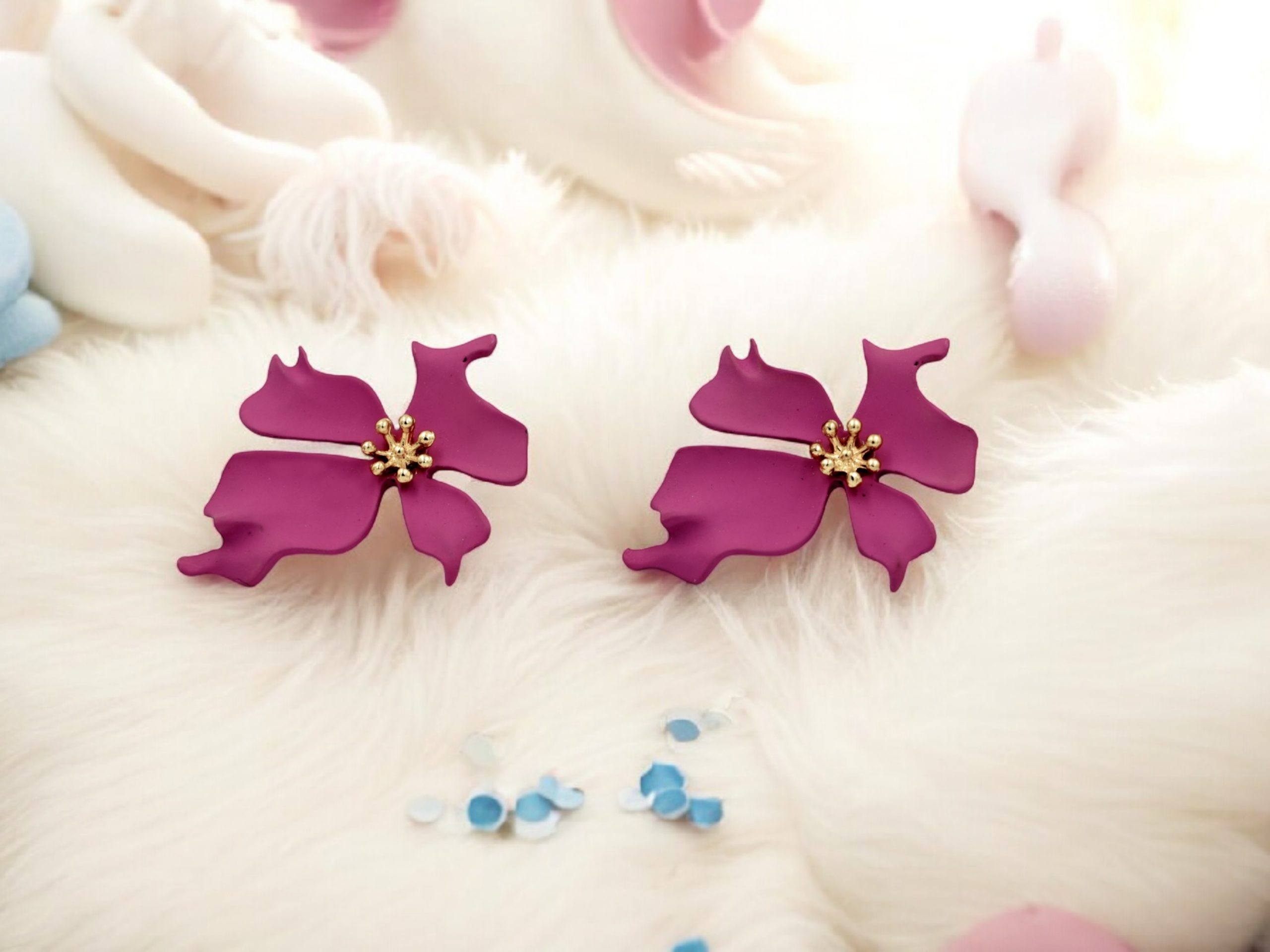 Let your style bloom with our Fuchsia Bloom Earrings. Crafted in a bold fuchsia hue with delicate golden accents at the center, these floral beauties are designed to turn heads. Lightweight yet striking, they bring the perfect mix of elegance and playfulness to your look. Whether it’s brunch with friends, a festive evening, or just when you feel like adding a pop of charm—these earrings are your go-to pick.
